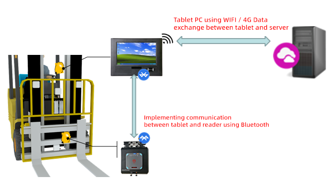 - Lt é instalado na empilhadeira para rastreamento de paletes